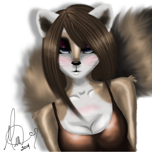 My physical appearance is nothing terribly special either. Gravity was not kind to my mere height of four feet and some inches. Instead of growing up, I grew out, my hips wide set, leading into a pair of thick thighs and topping off with a glorious bubble butt. And I mean glorious. My chest is small, really. Seems I wasn't gifted there, either. My fur is more of a dusty brown color which I suppose, makes me look a little more like a tanuki. I was born in America though, so I'd like to think that makes me a legit raccoon. Thanks again, to my lovely mother, I have greyish/blue eyes that speak for me, more often than I'd like. And lastly, my tail. I can't really explain why or how, but my tail holds items without limit. It certainly comes in handy when out collecting.