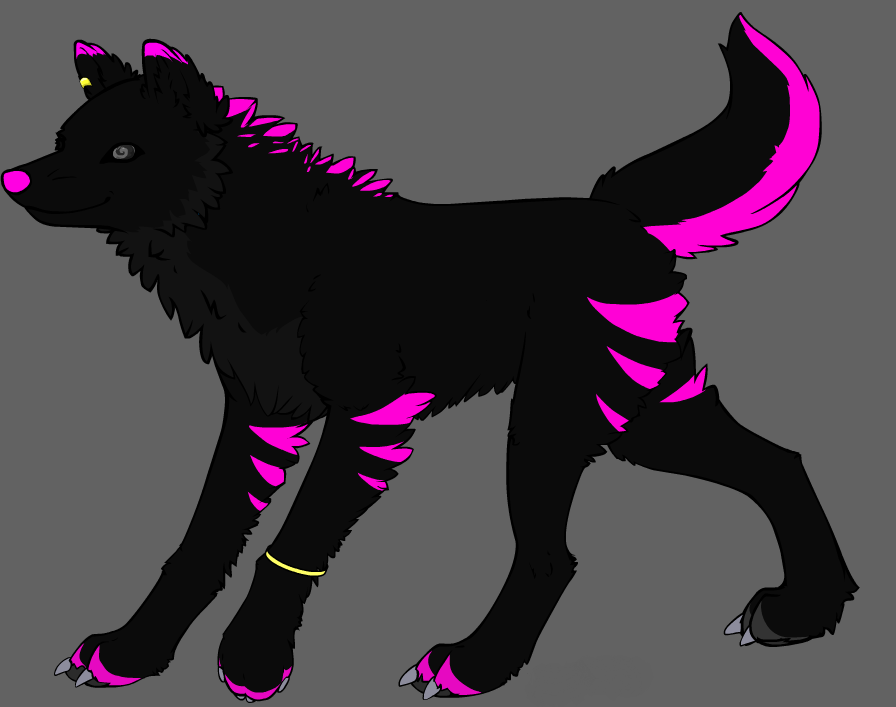 About Me: Just looking for some friendly chat or idk.... I am a black wolf with neon pink on the tips of my paws and on the underside of my tail. You can call me Soy or Soya (make sure your pronounce soy as in soy sauce) nya~~